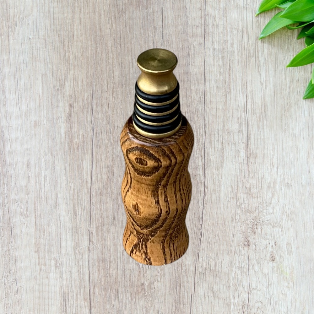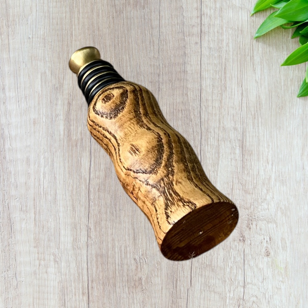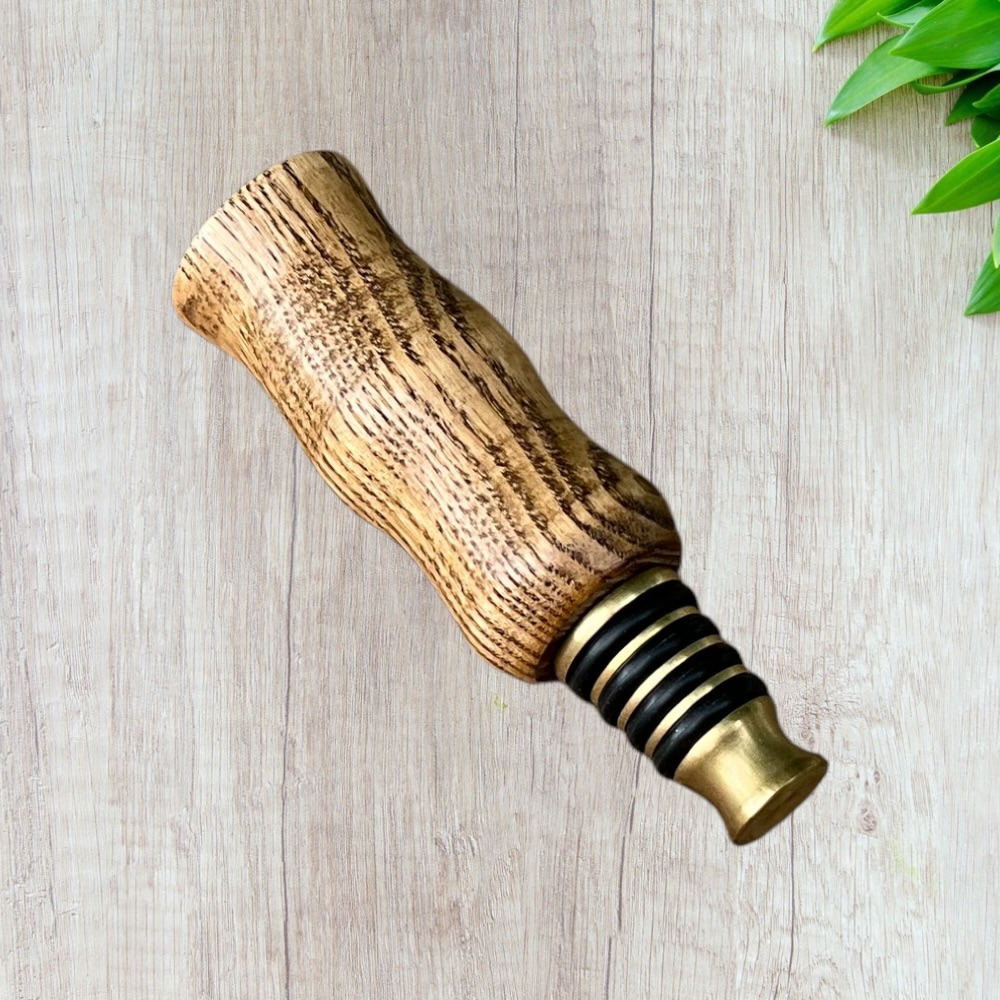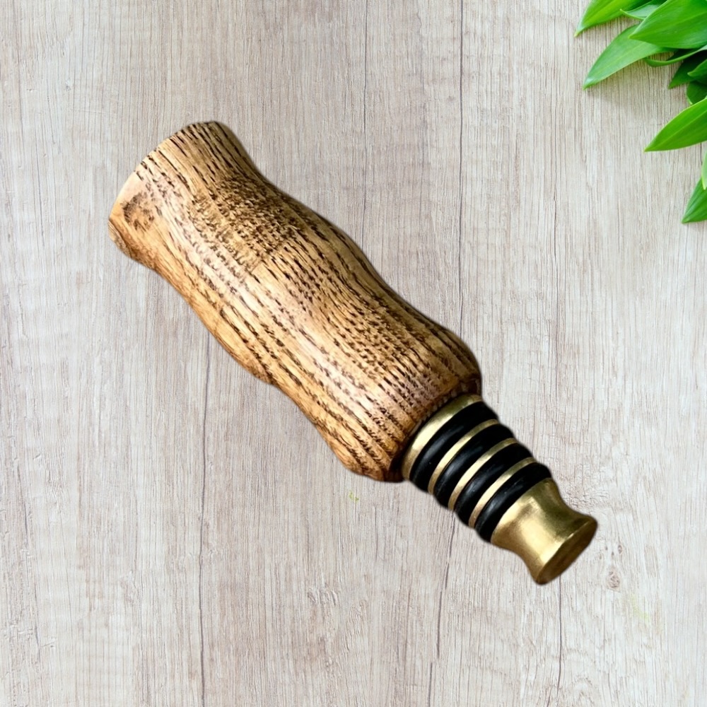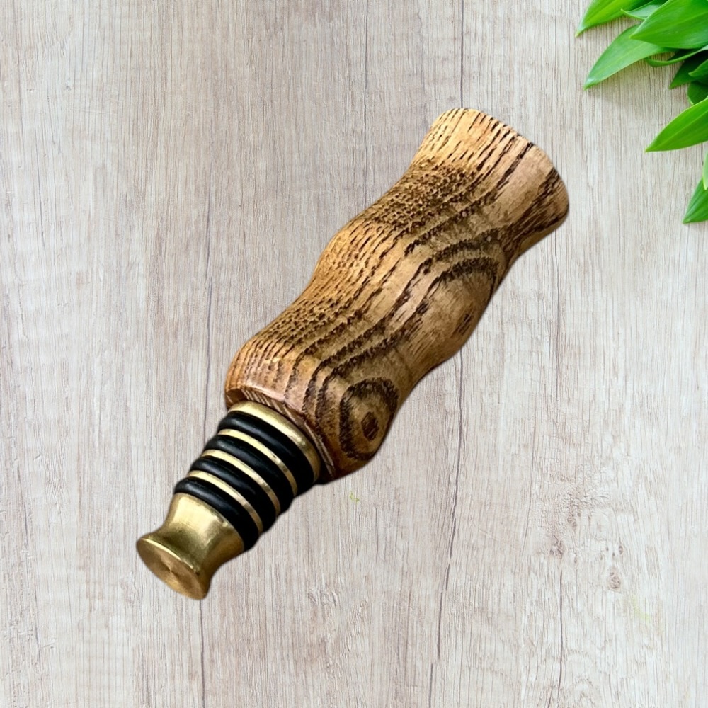 Designed for both style and function, this bottle stopper fits securely into most standard wine and liquor bottles, helping preserve freshness while adding a touch of rustic elegance. The durable brass base ensures a tight seal, while the hand-finished wooden top provides a warm, artisan feel.