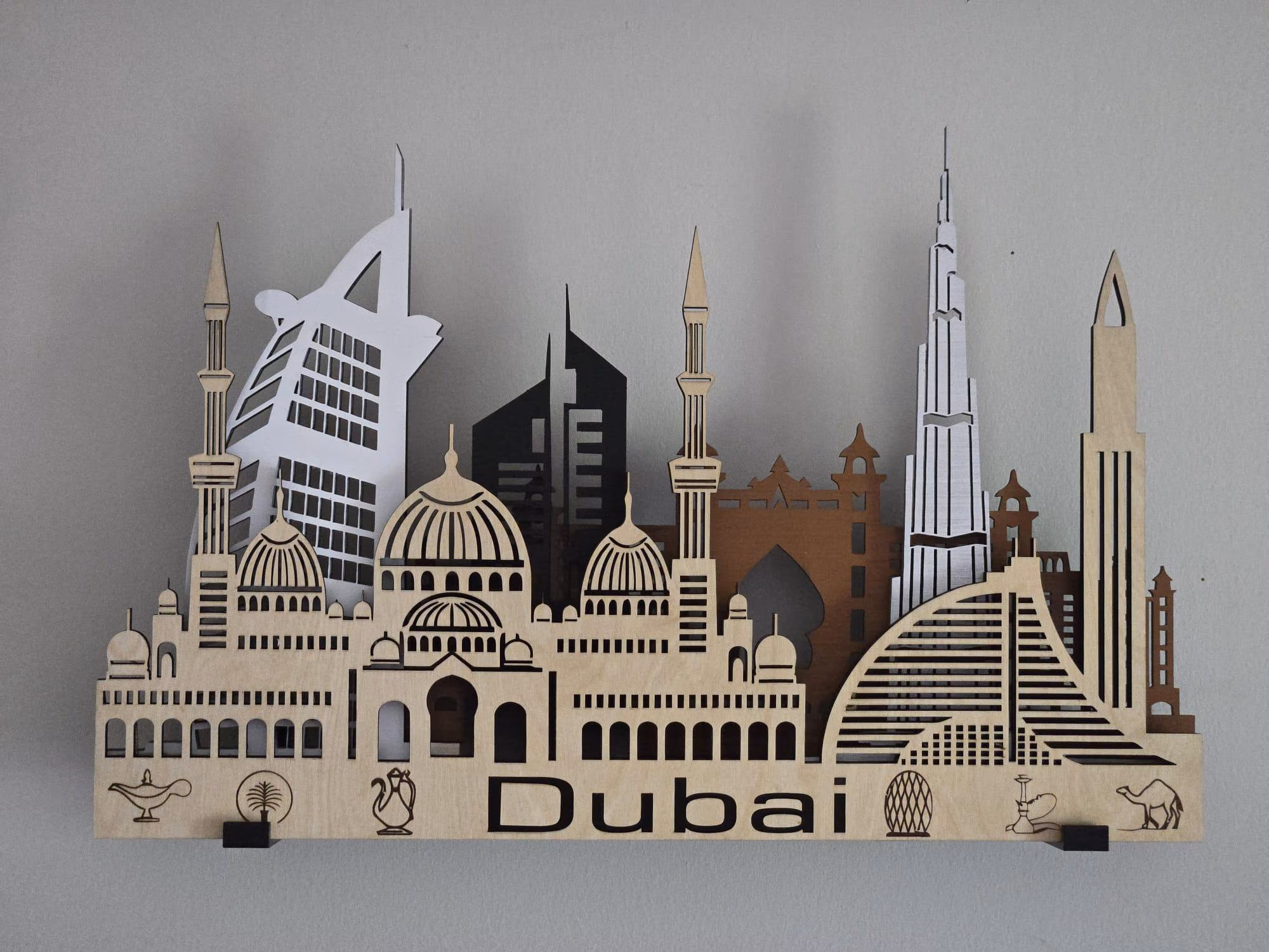 3D Dubai Cityscape: Sculptures Laser Cut Birch Wood Wall Art with LED