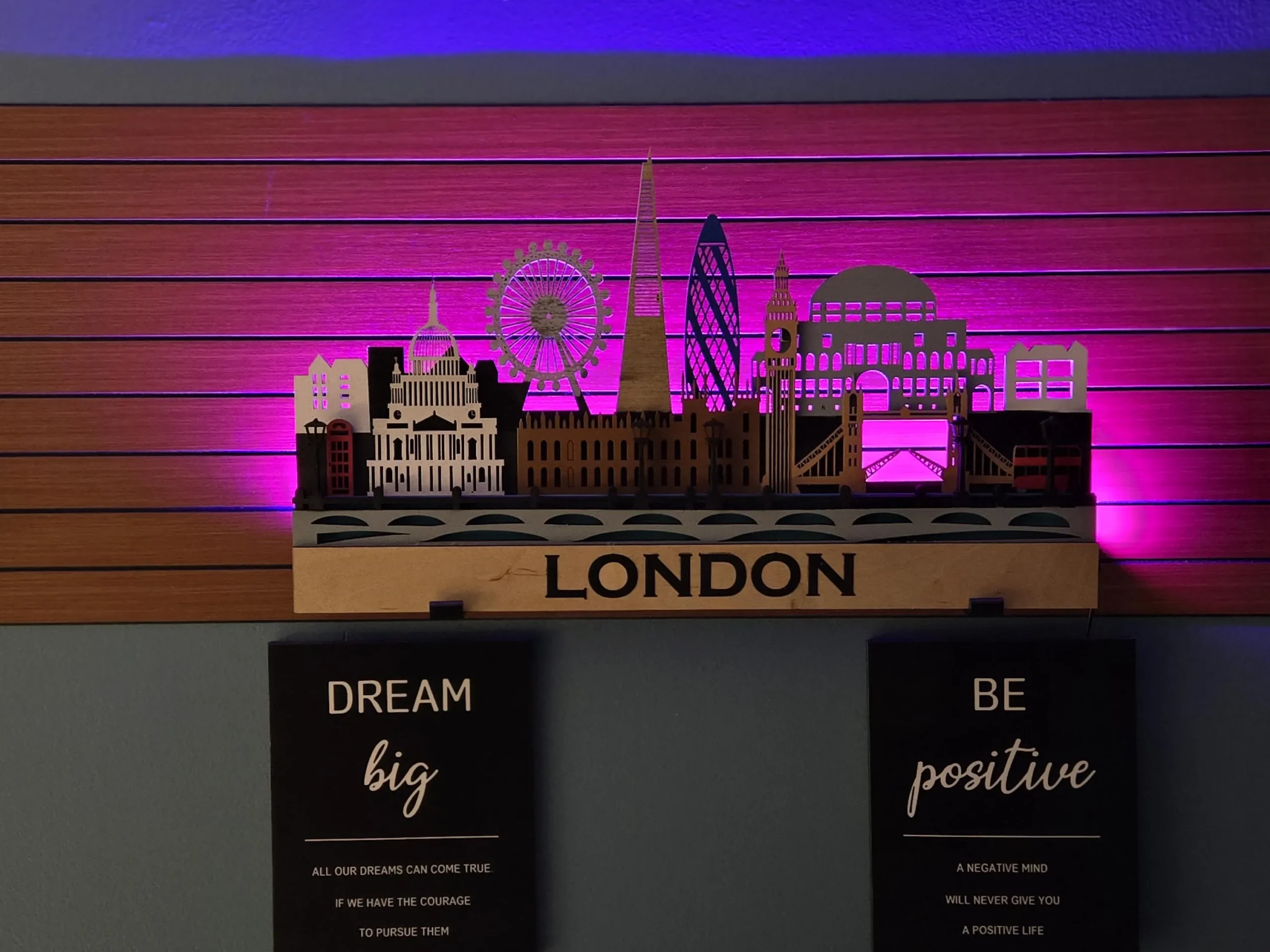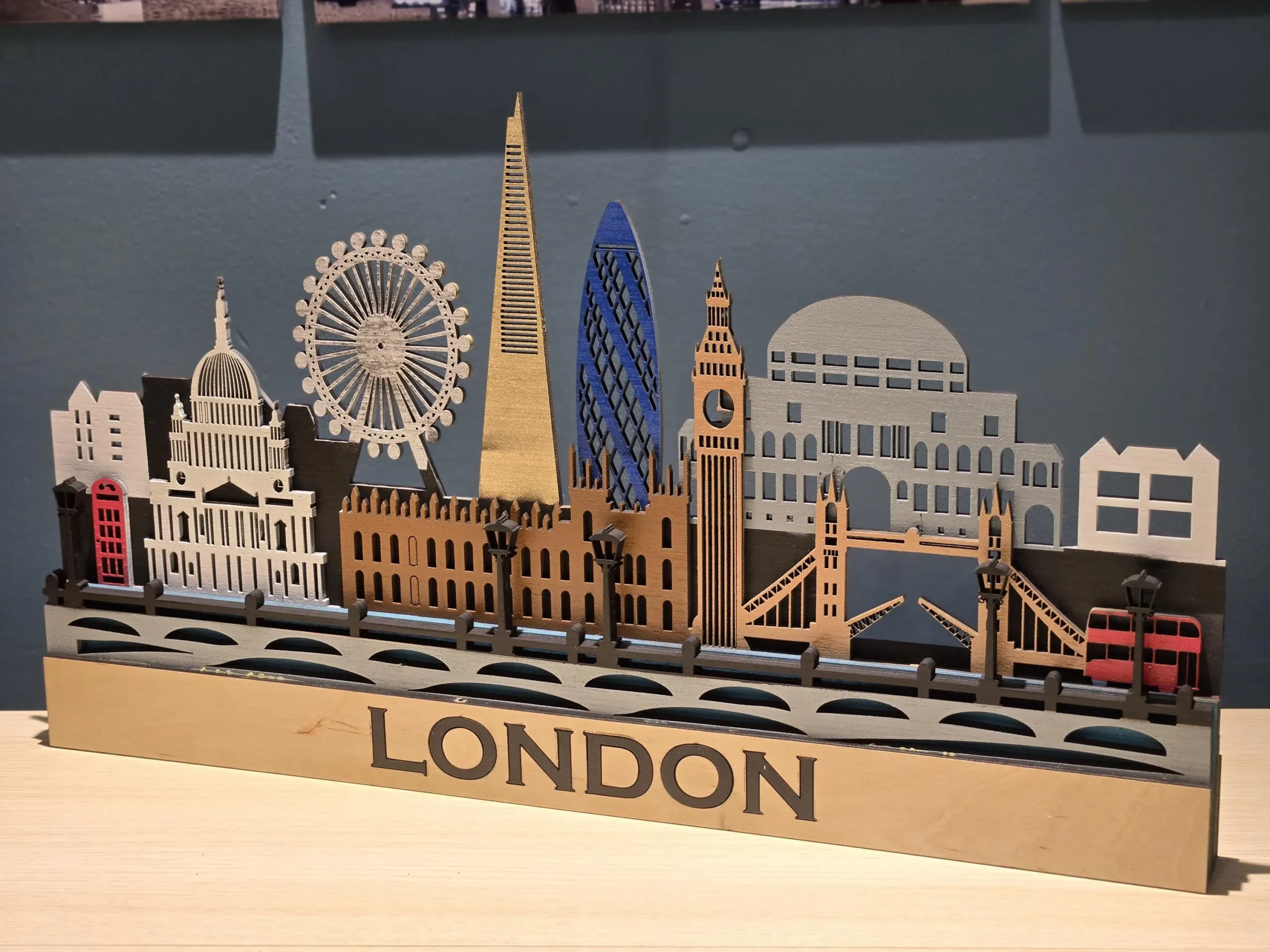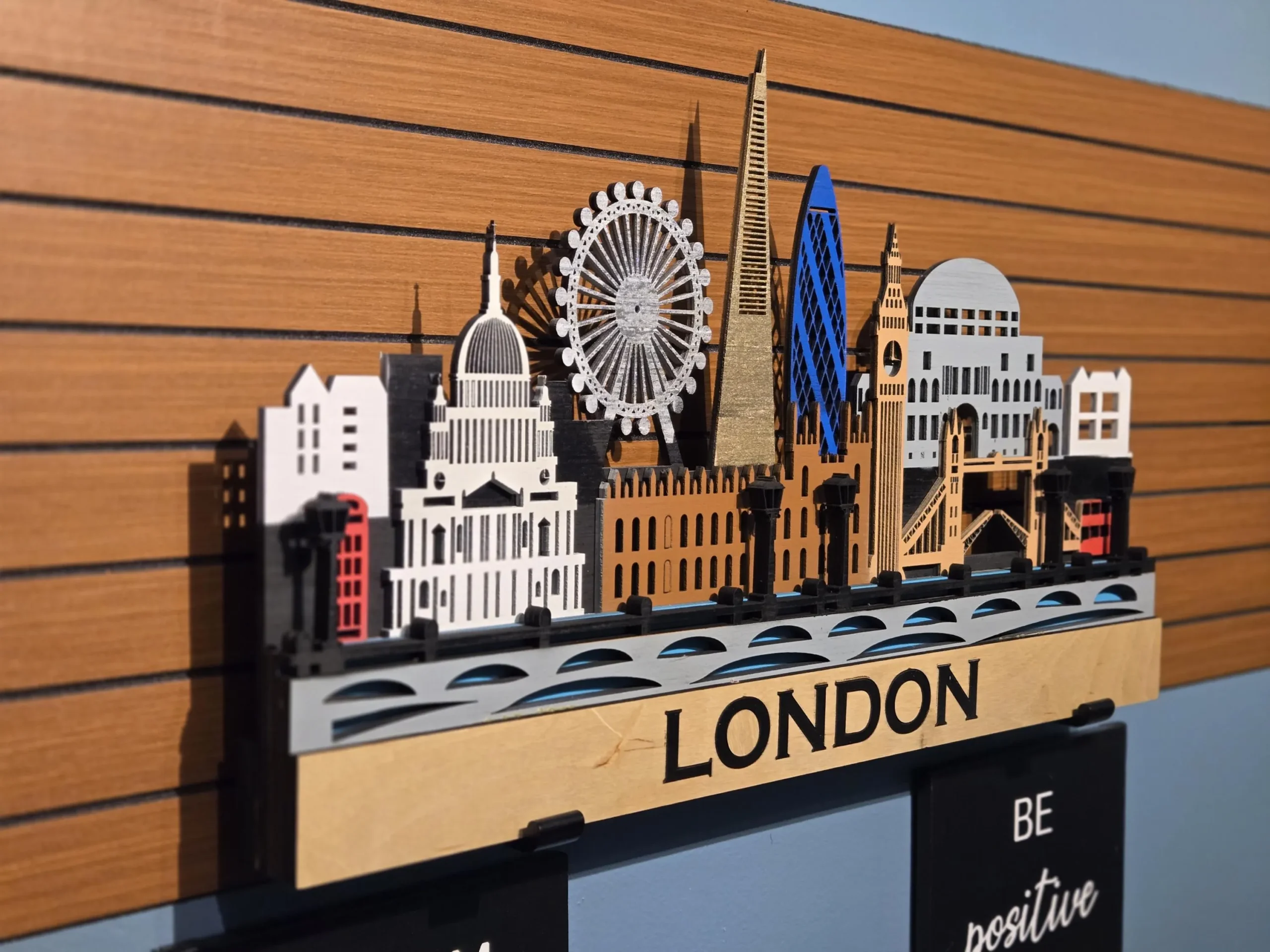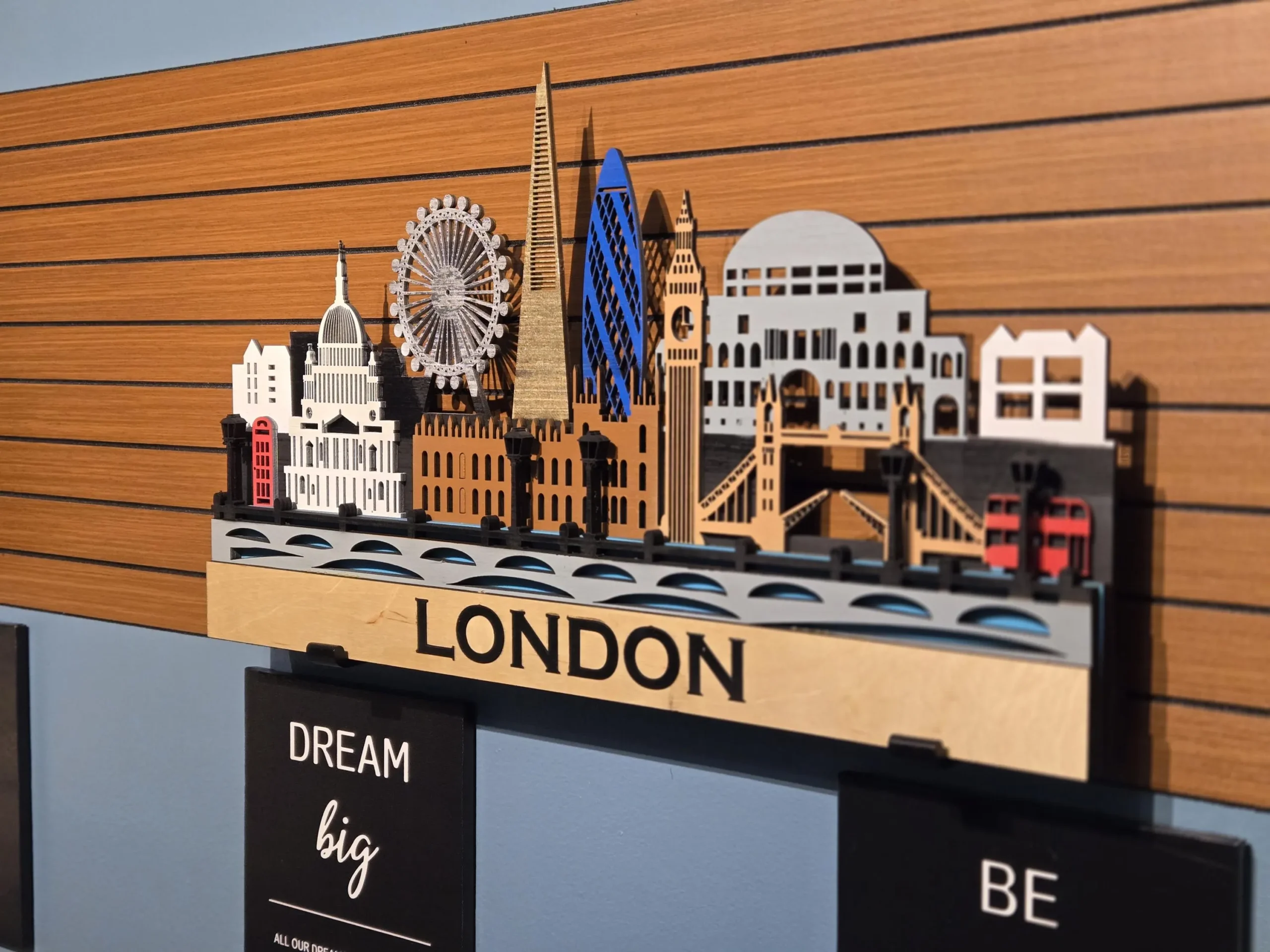 3D London Cityscape Wood Wall Art: Sculptures LED Backlight, Remote Control