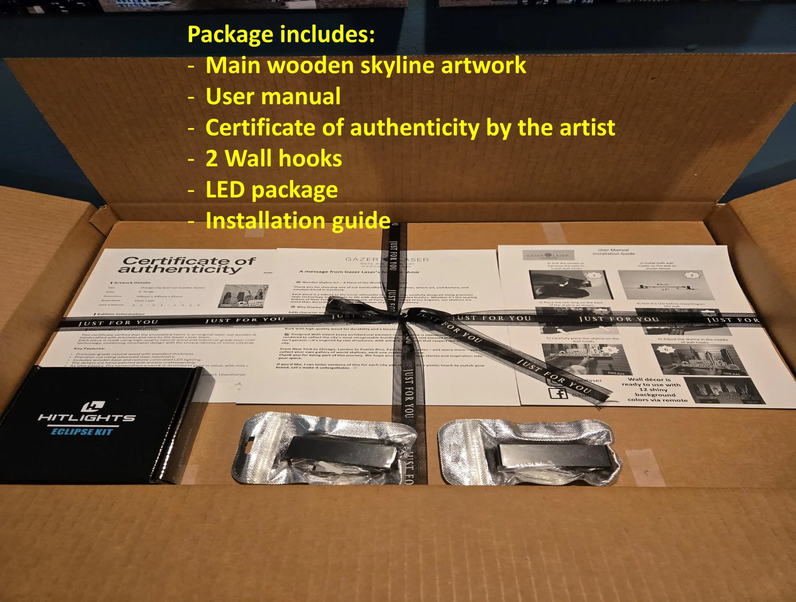 • Premium Materials: Front layer is natural Birch wood; layers 2–5 are hand-colored Medium Fiber Board. Special design creates a dynamic play of light and shadow, even when LEDs are off.