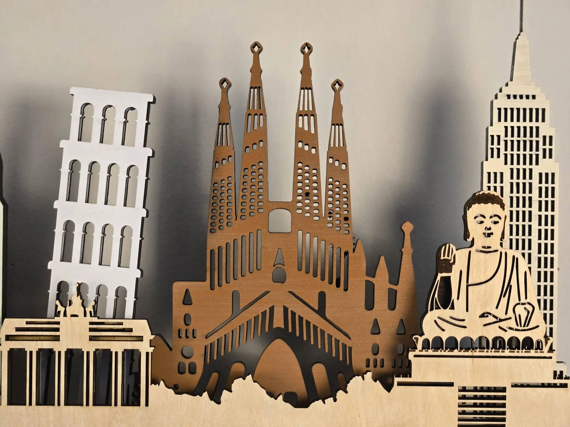 Bring the energy of the city into your home or office with this laser-cut wooden masterpiece. Handcrafted with precision, each skyline features 5 layers of wood, creating a stunning 3D effect that adds elegance and depth to any space. Whether it’s New York, Chicago, Paris, or any city you love, let your favorite skyline inspire you every day.