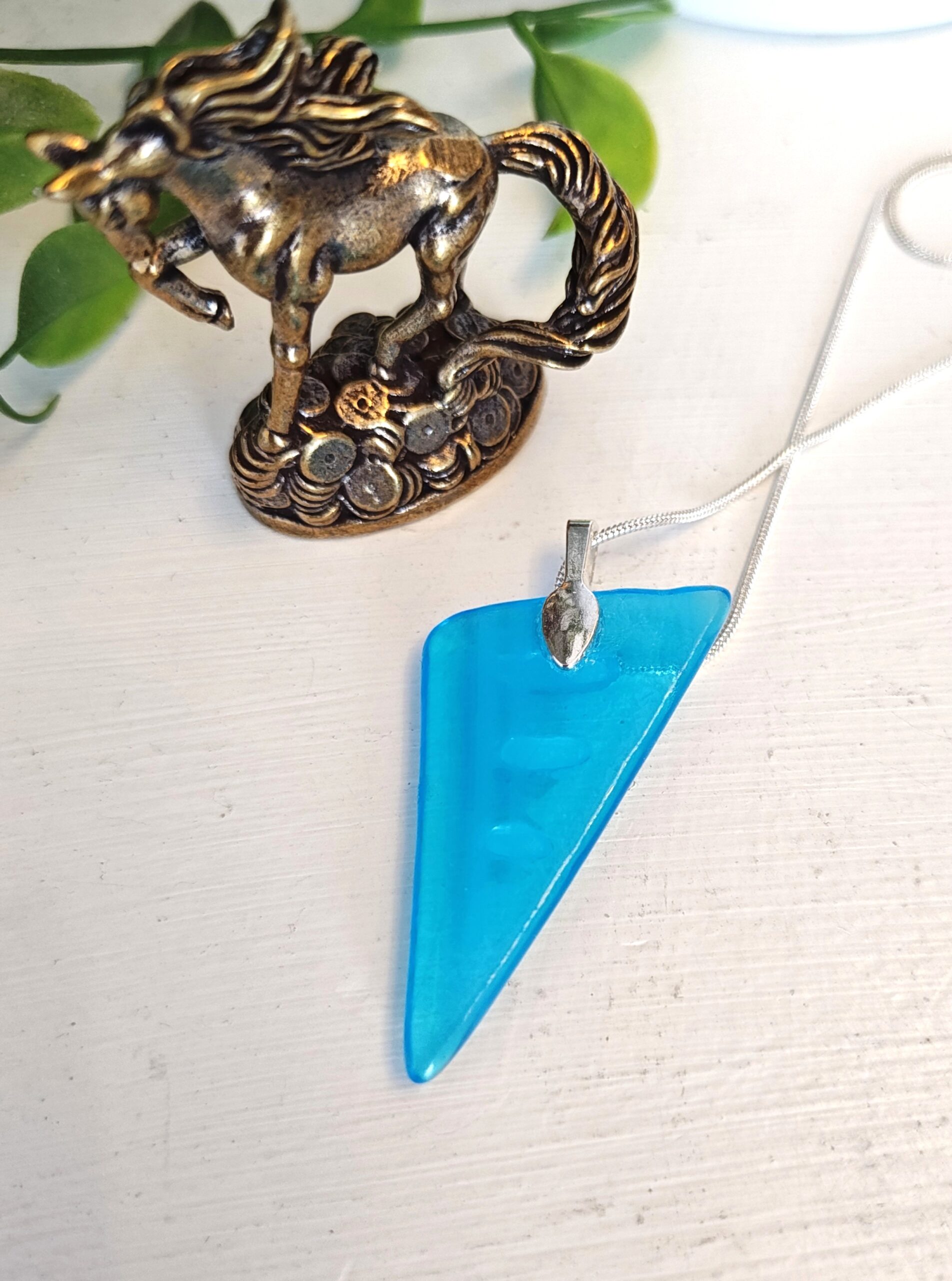 90s style bright blue abstract triangle textured pendant necklace, Unique artisan handmade jewelry