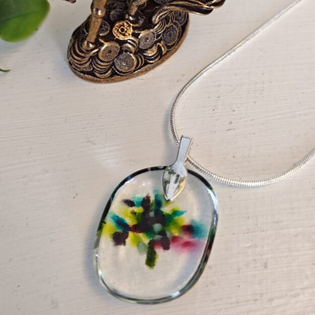 Each pendant necklace is a one of a kind piece of wearable art, handcrafted with intention and joy. Lightweight and easy to wear, these artisan made fused glass pendants are designed to move effortlessly from everyday moments to special occasions.