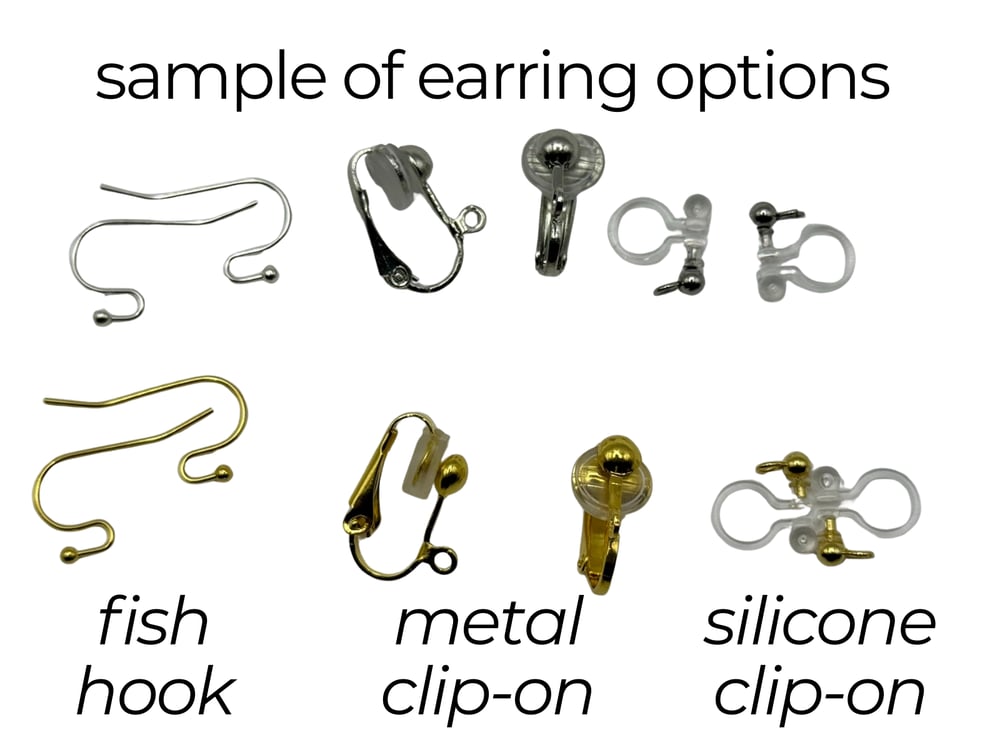 | Earring options | Fishhook, Metal clip-on, Silicone clip-on |