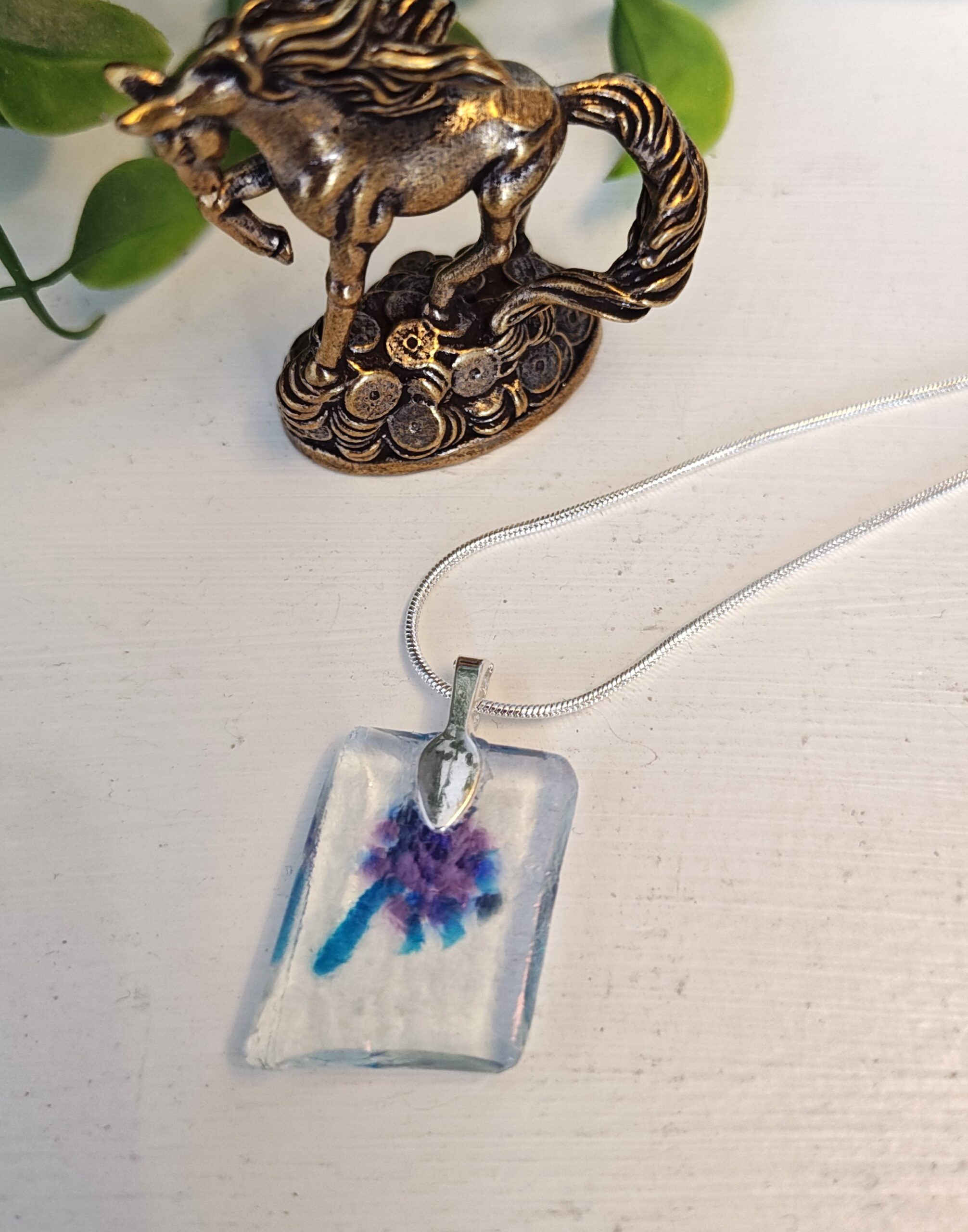 This one of a kind fused glass pendant is a tiny treasure, handcrafted with love and care. Each piece shimmers with its own unique blend of colors and textures, making every pendant truly special.