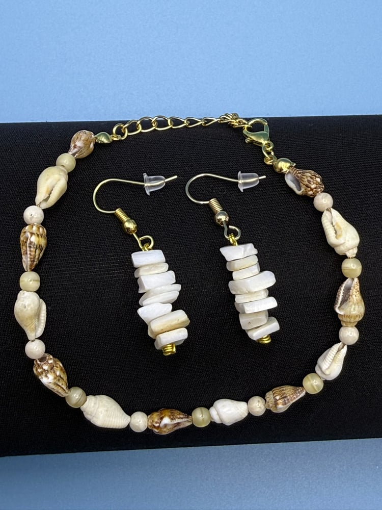 Natural Seashell Bracelet & Earrings Set | Choose Silver or Gold Finish | Ready to Ship