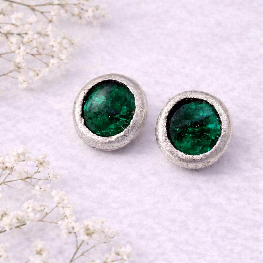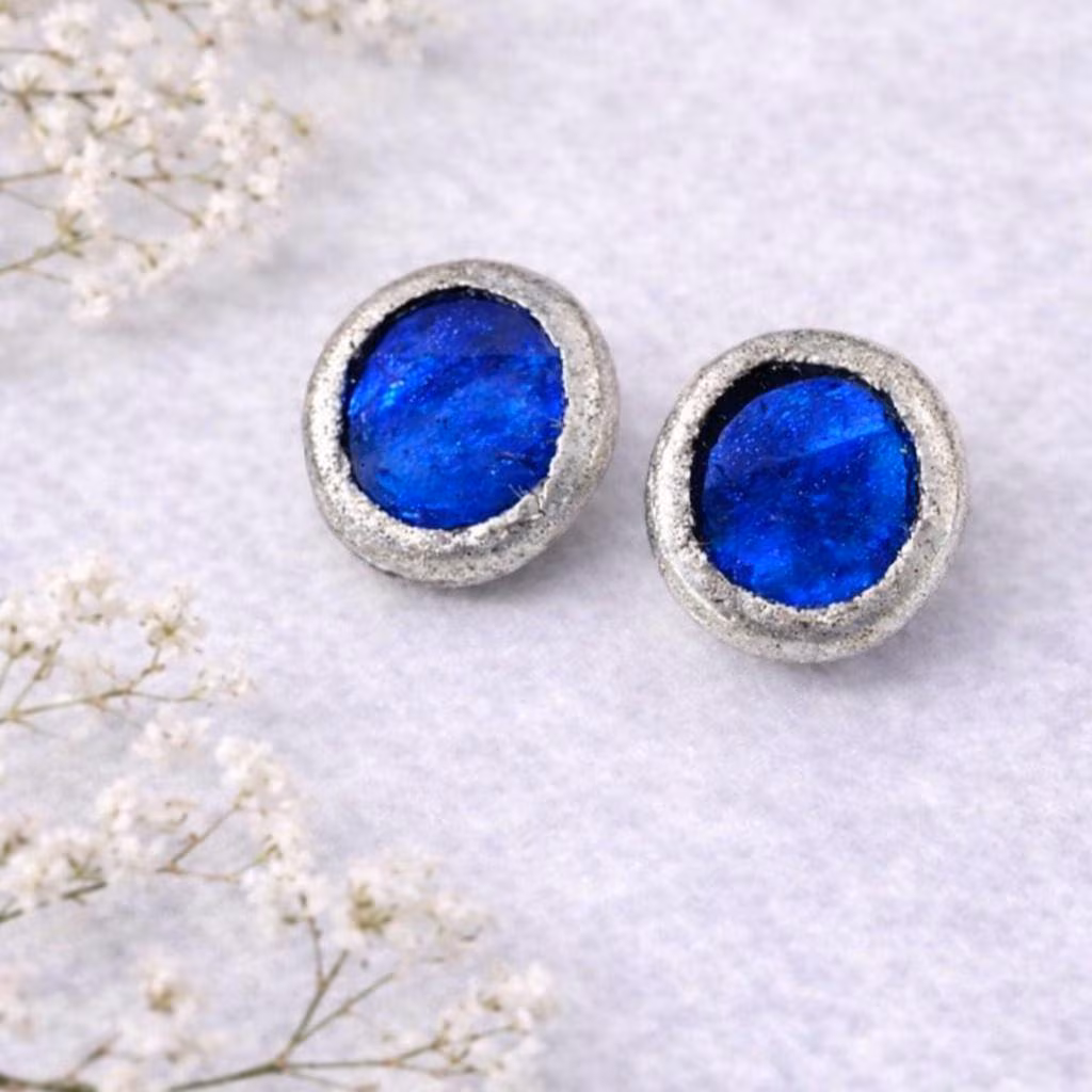 Each pair features genuine stained glass set in lead-free silver + tin solder, with solid 925 sterling silver posts—safe for sensitive ears.