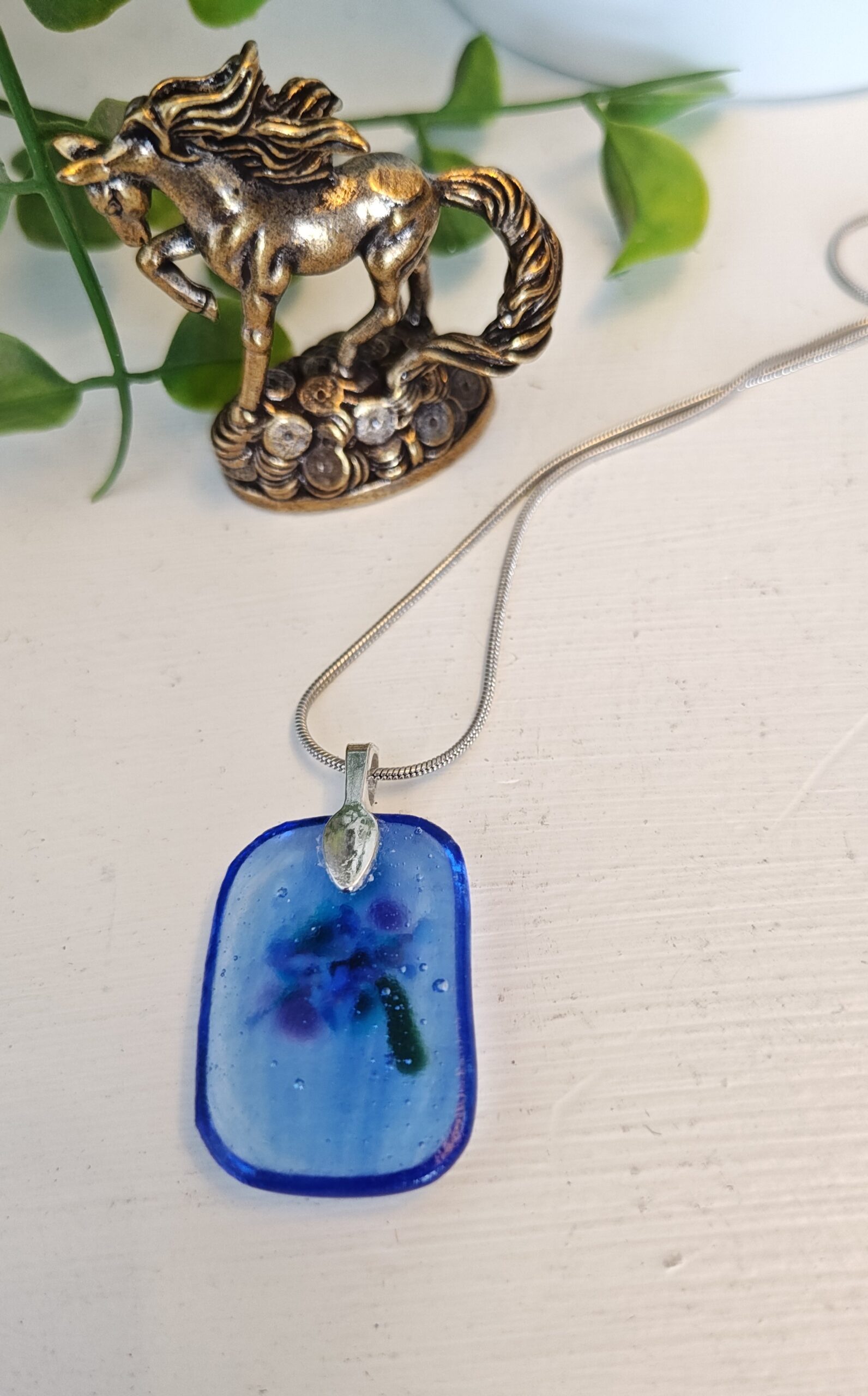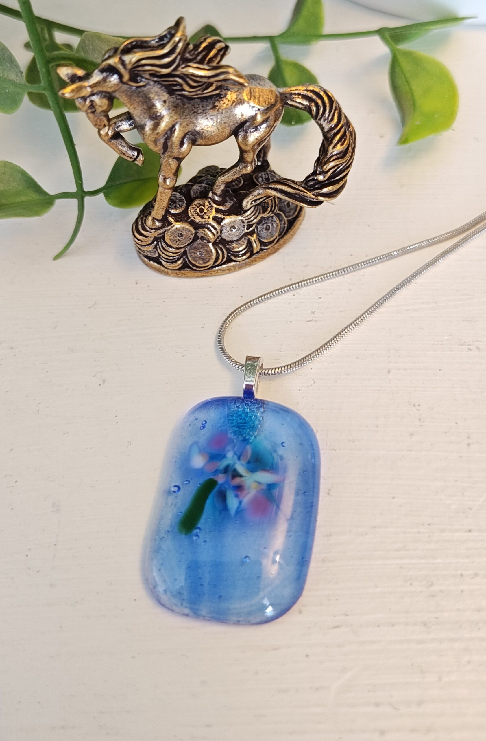 This one of a kind fused glass pendant is a tiny treasure, handcrafted with love and care. Each piece shimmers with its own unique blend of colors and textures, making every pendant truly special.