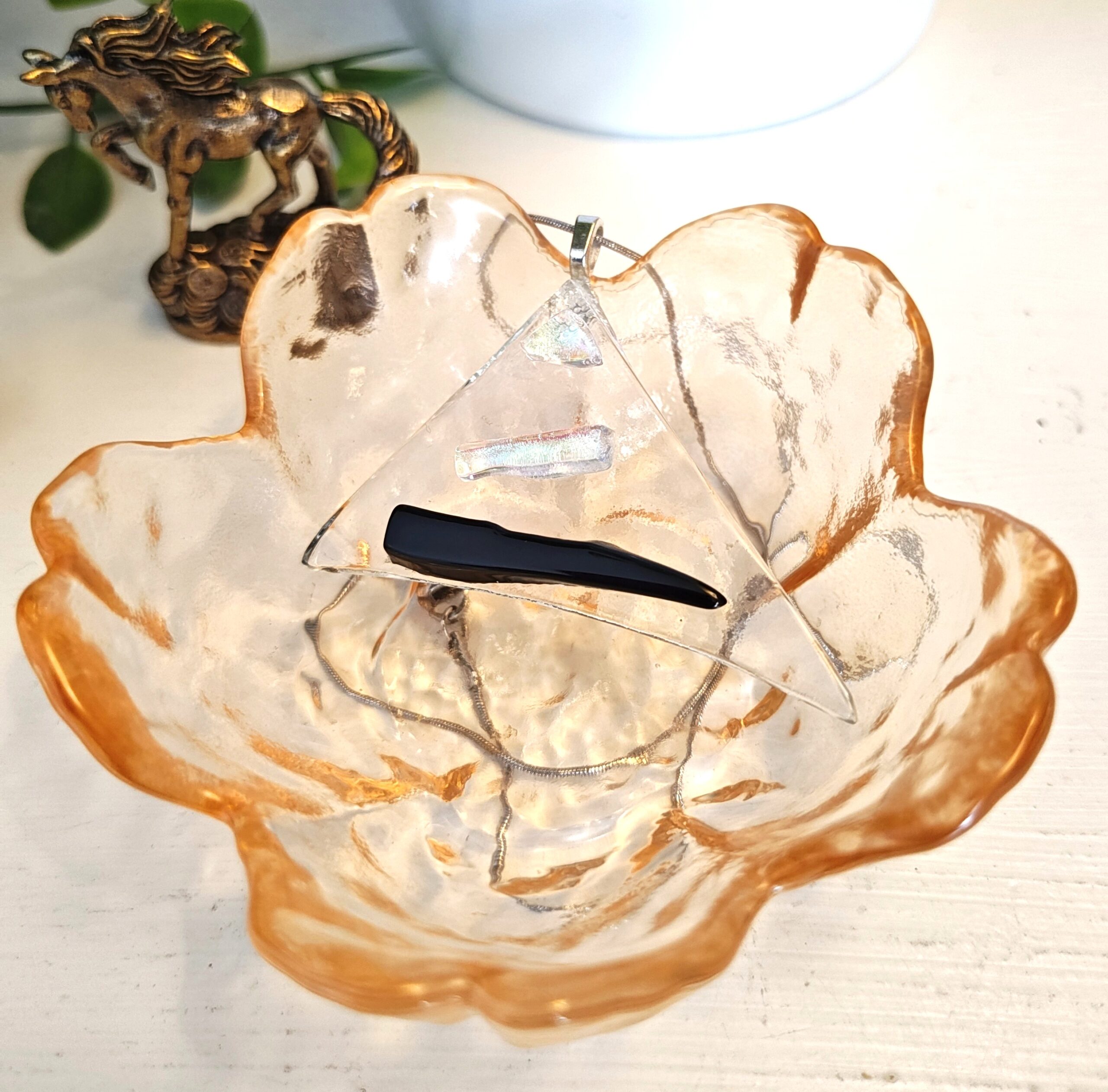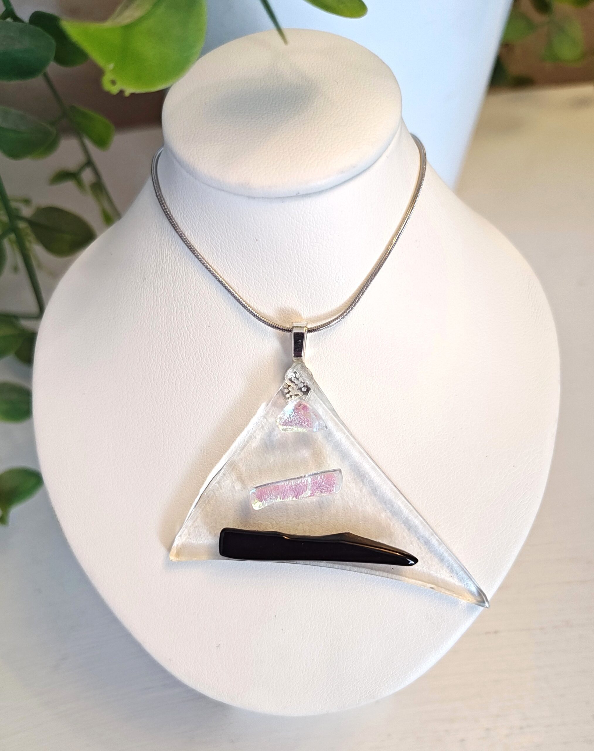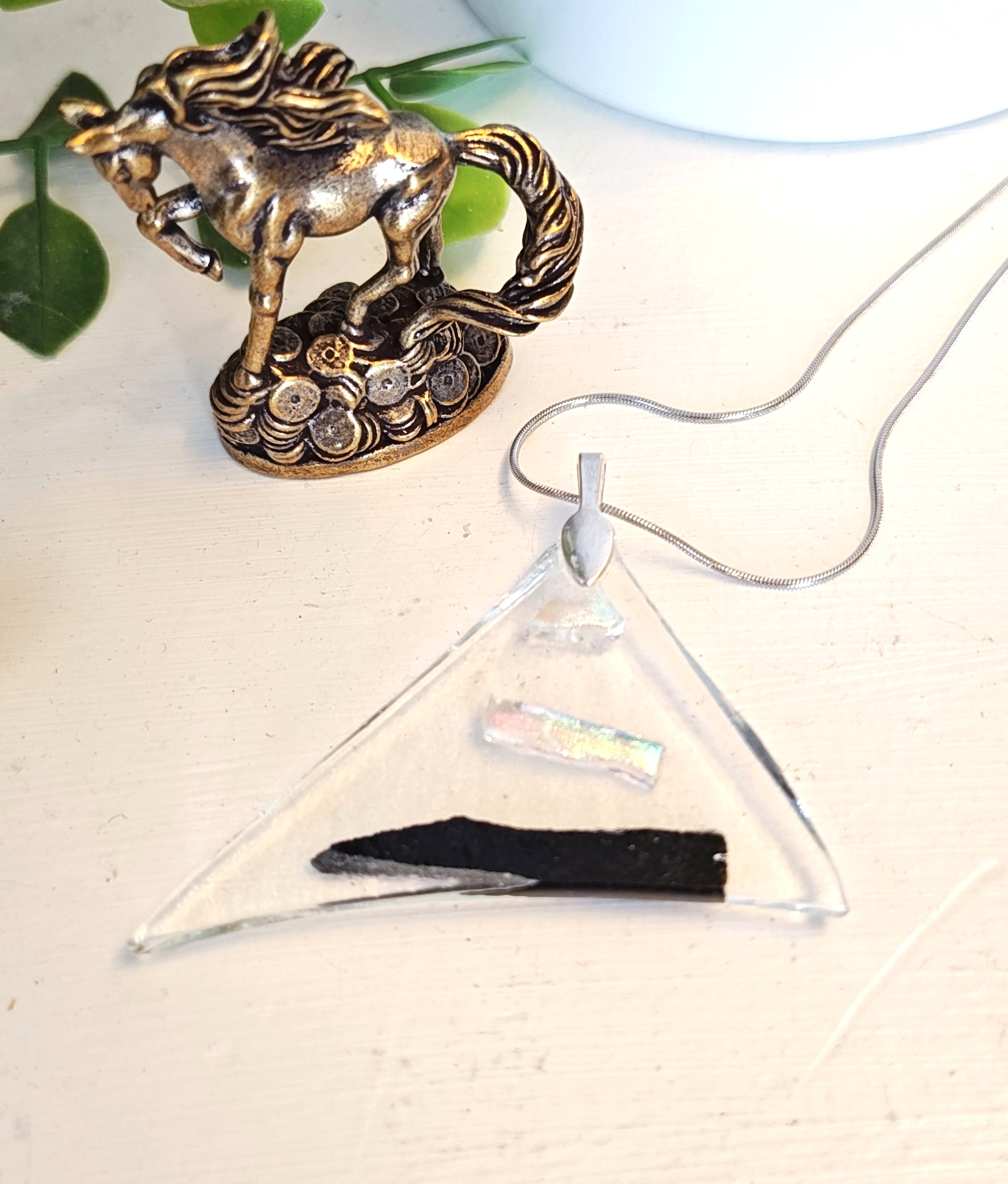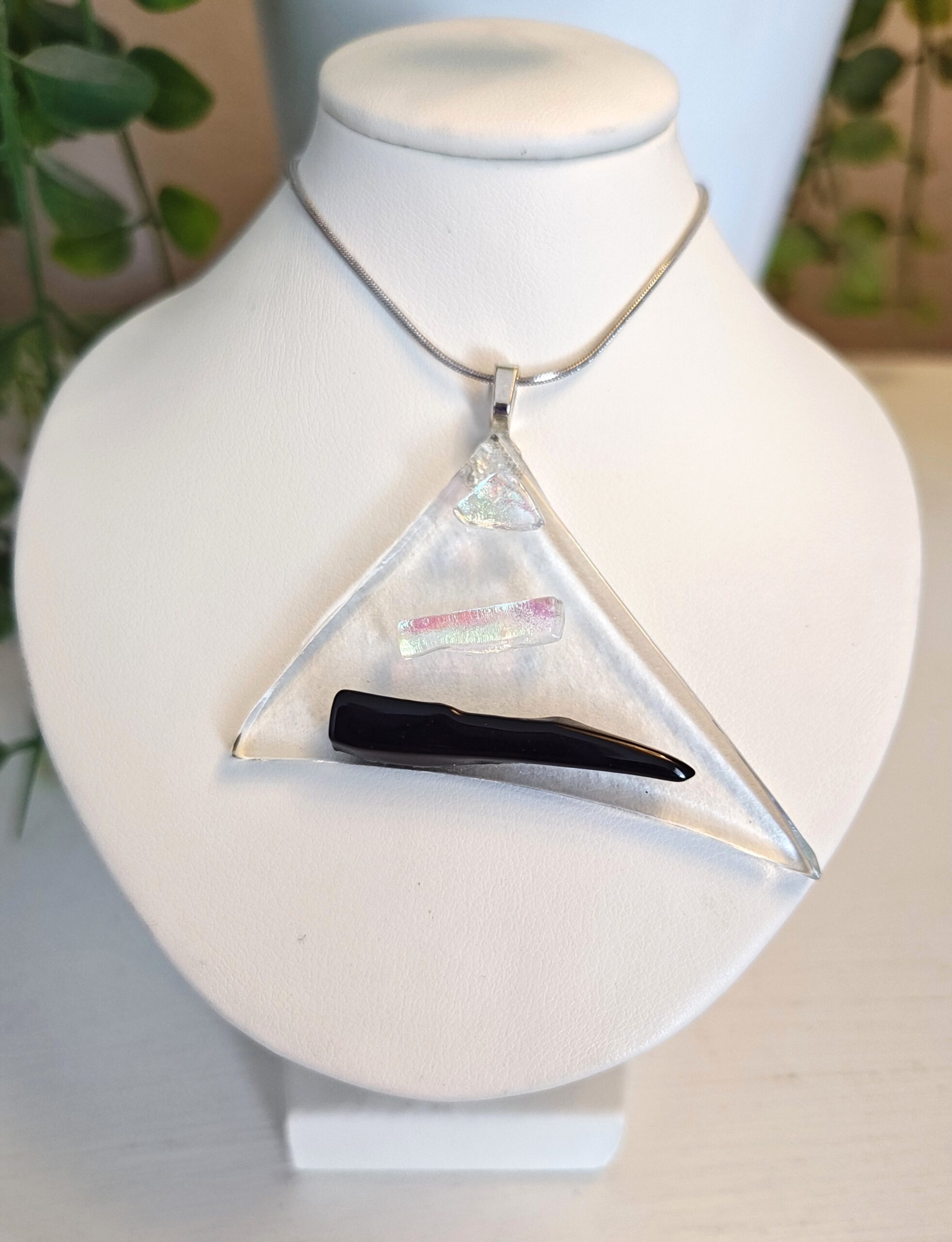 Abstract melting pyramid triangle with iridescent and black pendant necklace, one of a kind textured jewelry