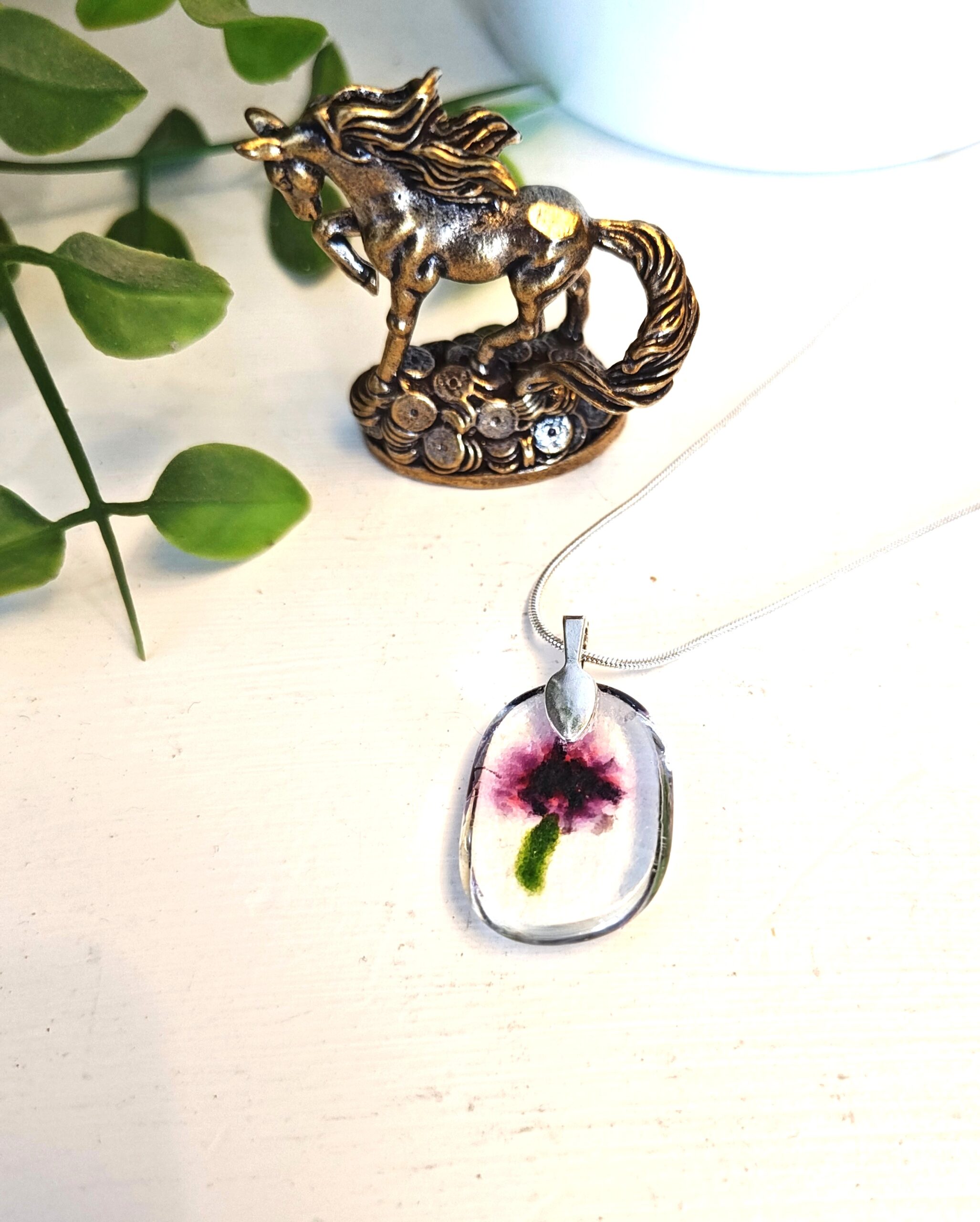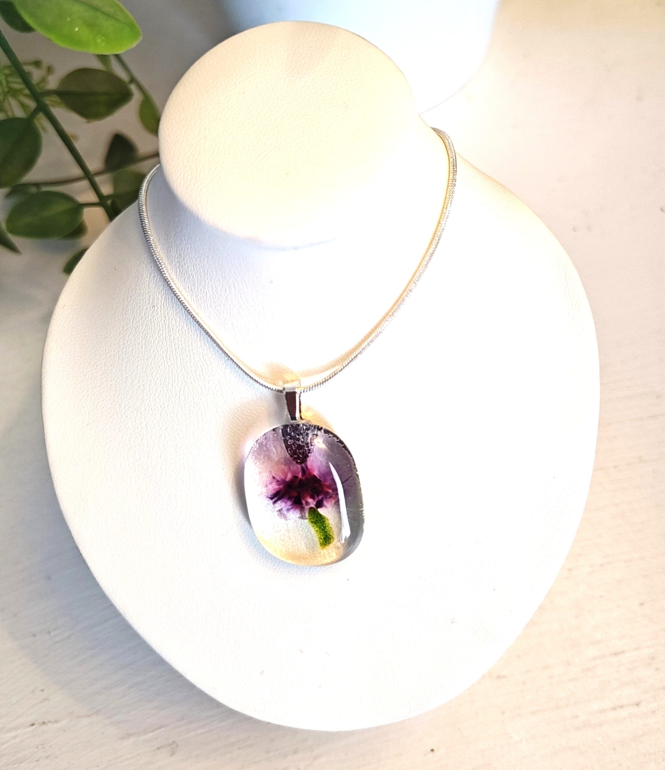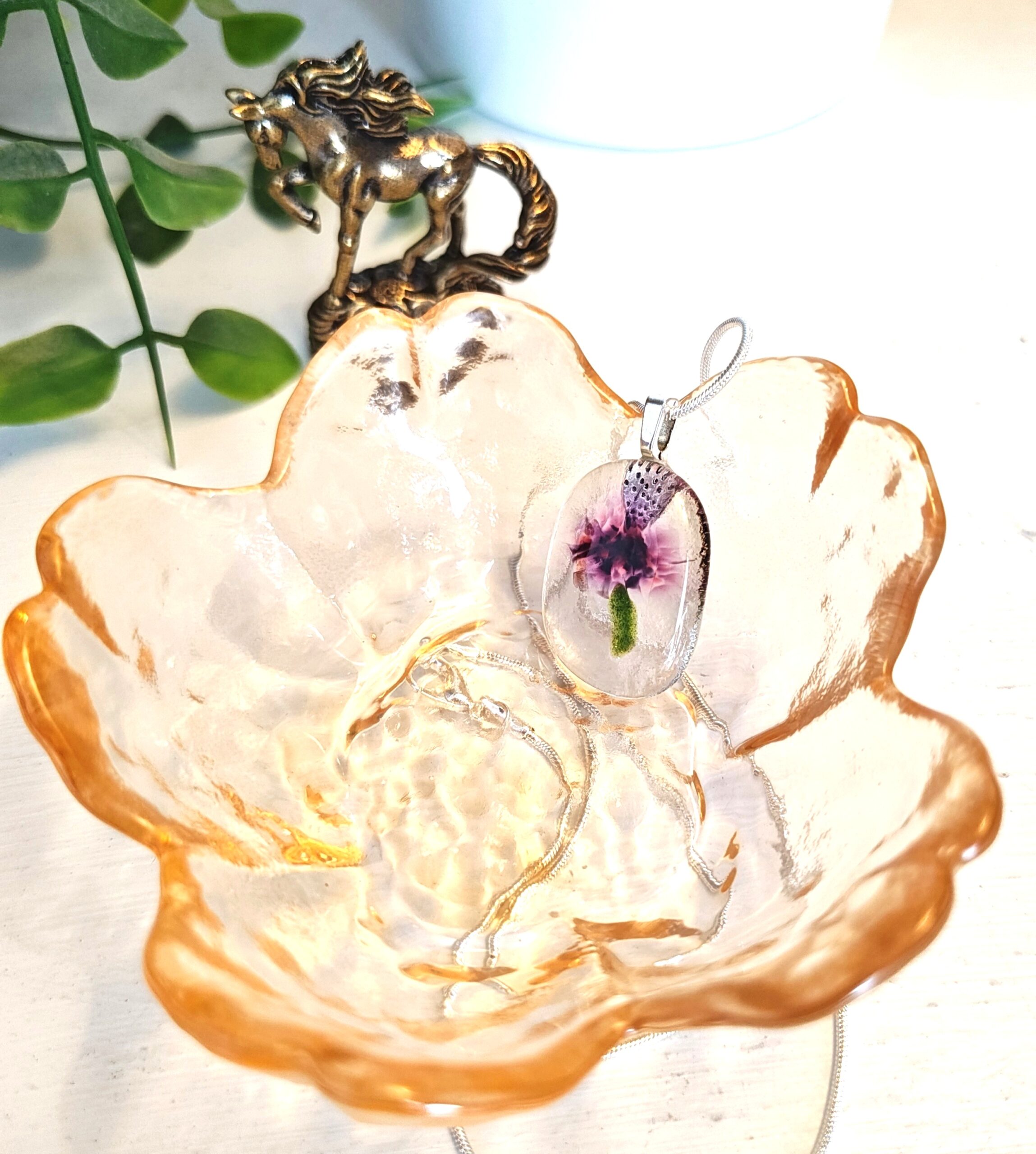 Clear and purple flowy abstract flower pendant necklace, One of a kind artisan jewelry