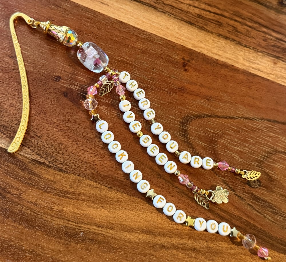 Romantasy Beaded Bookmark | Handmade Gold‑Tone Bookmark for Romance & Fantasy Readers