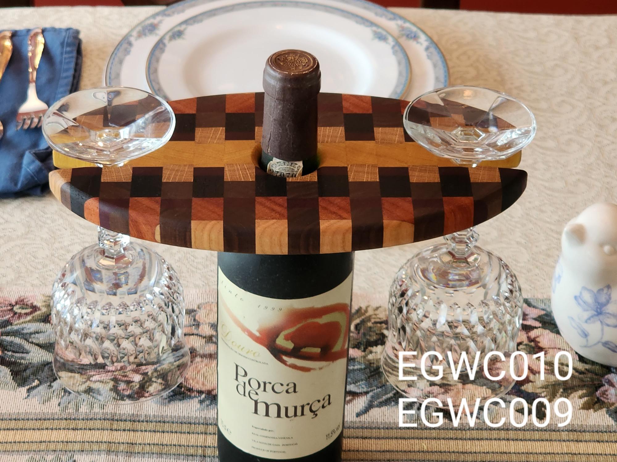 2 Glass Wine Caddy made with End Grain Tiger Wood, Walnut, African Black Wood, Cherry, Mahogany